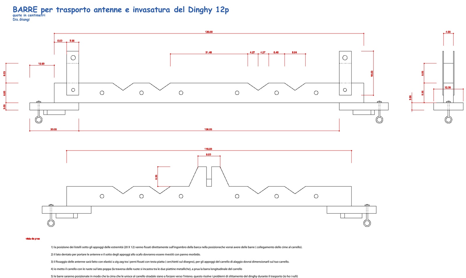 Barre per il trasporto delle antenne e dell’invasatura del Dinghy 12 piedi.